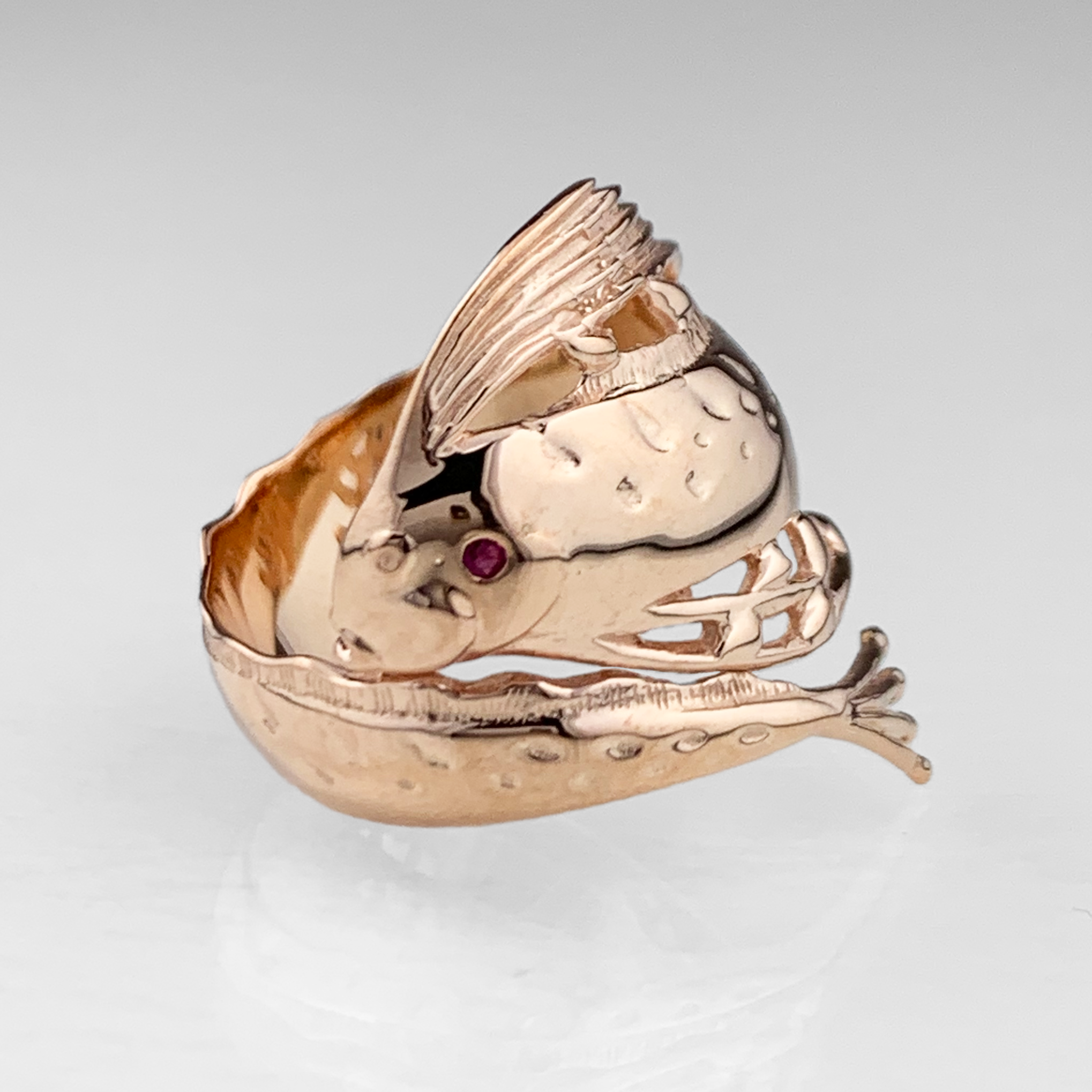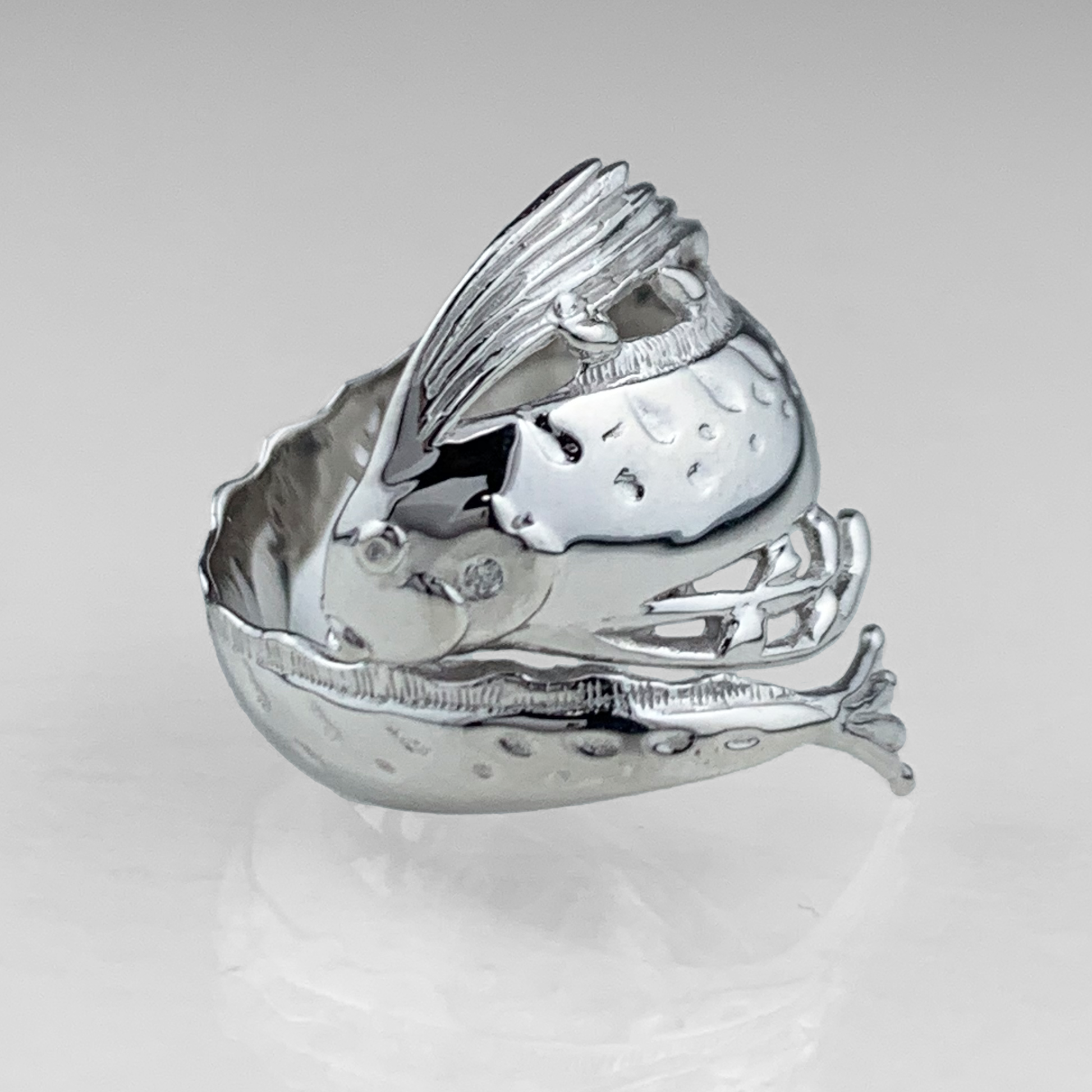 目元にはなんと贅沢にも0.01ctの天然石をあしらい、気品と高級感あふれるリングに仕上がっています。