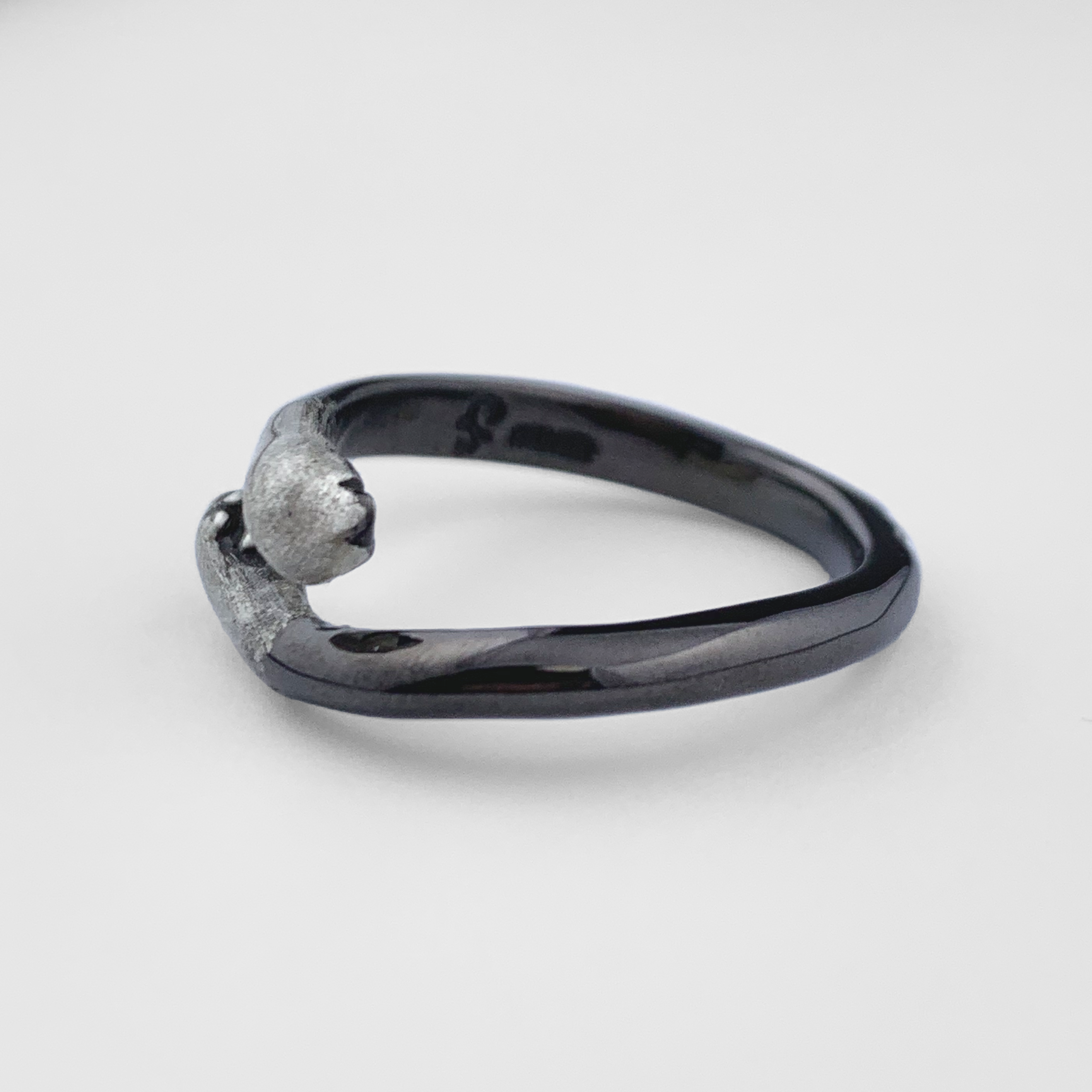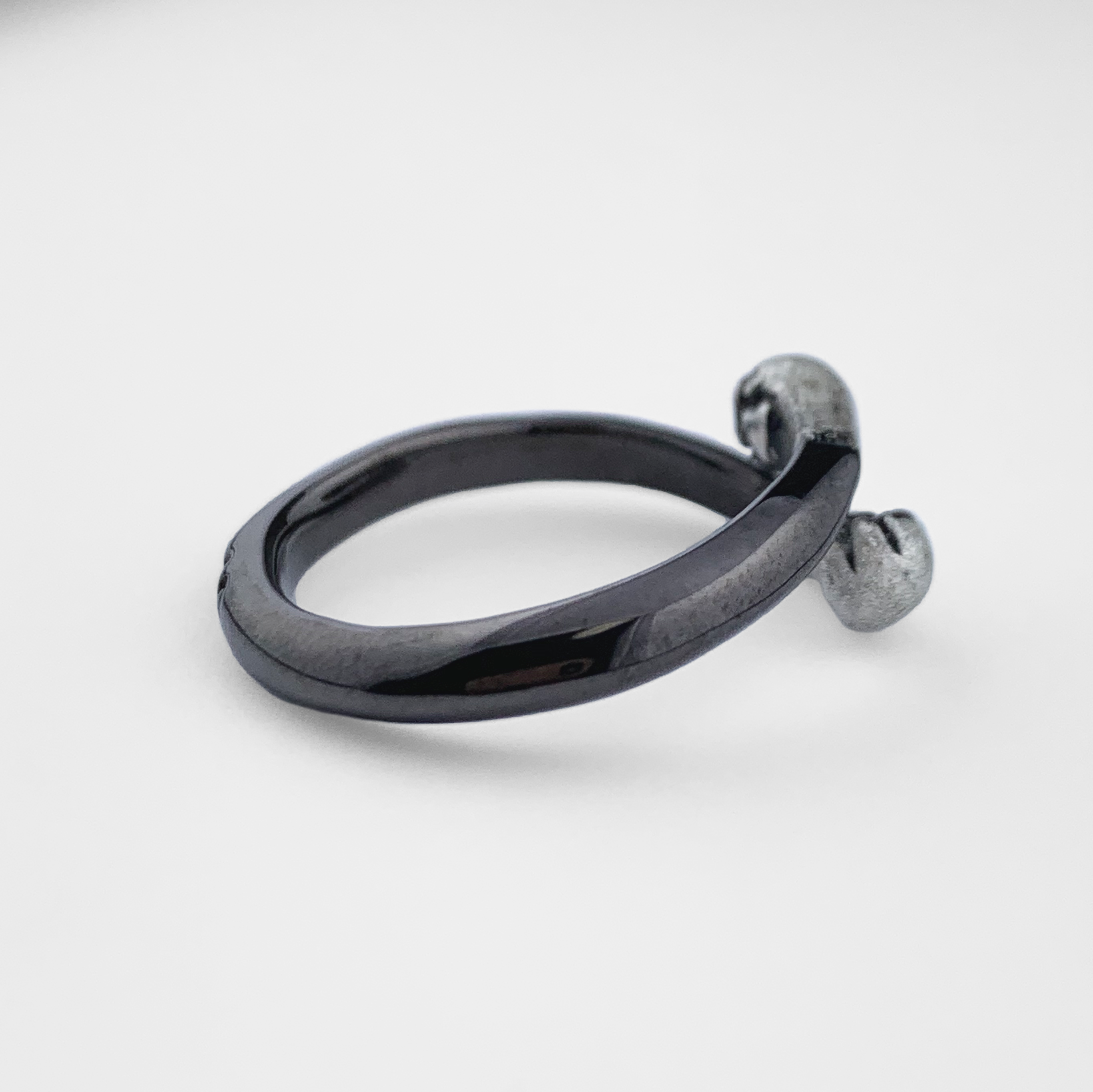 指にしがみつくキュートな手から一転、180度向きを変えればクールなブラックリング。