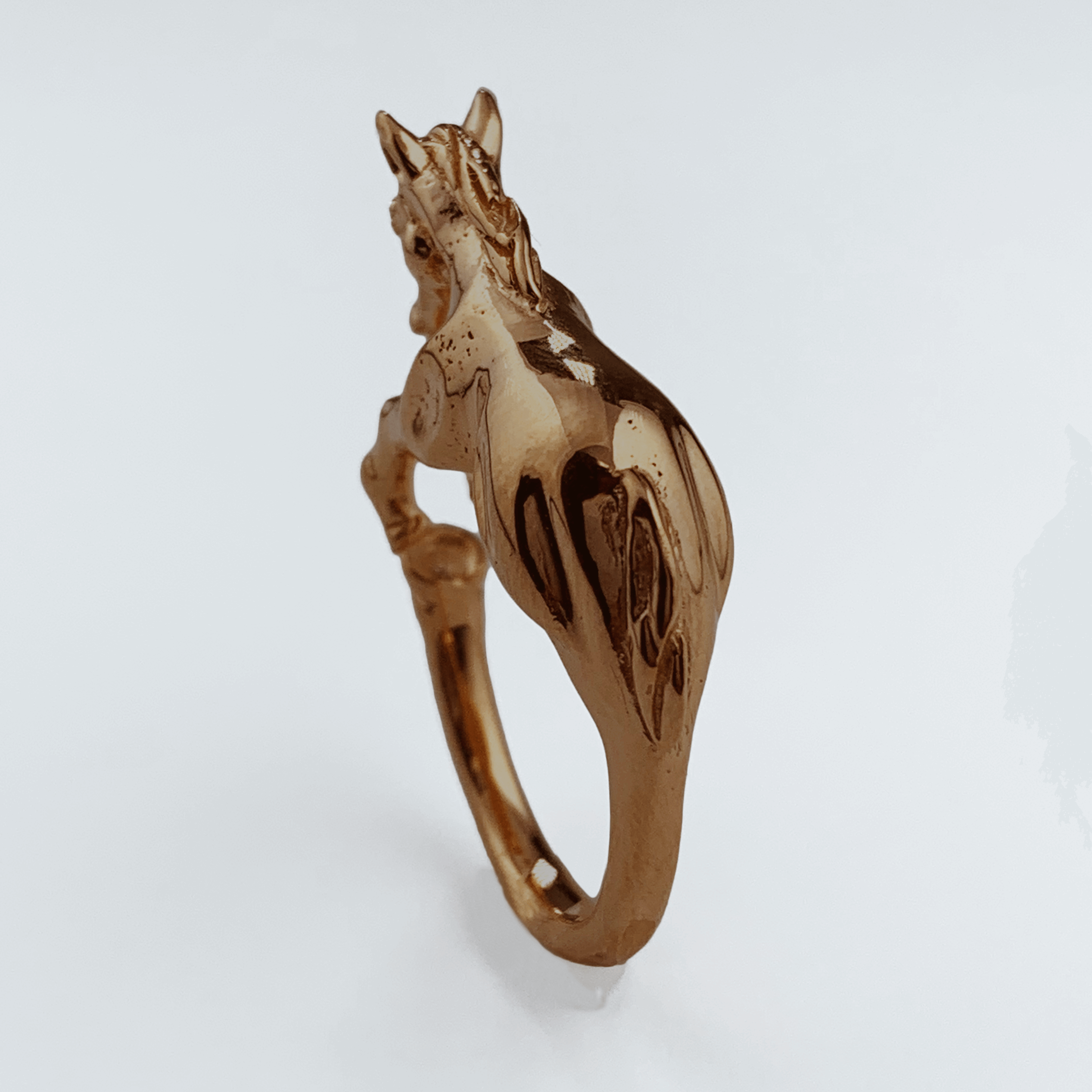 指から立ち上がる馬のフォルムに、たてがみの美しさ、筋肉の盛り上がりが目を惹きます。