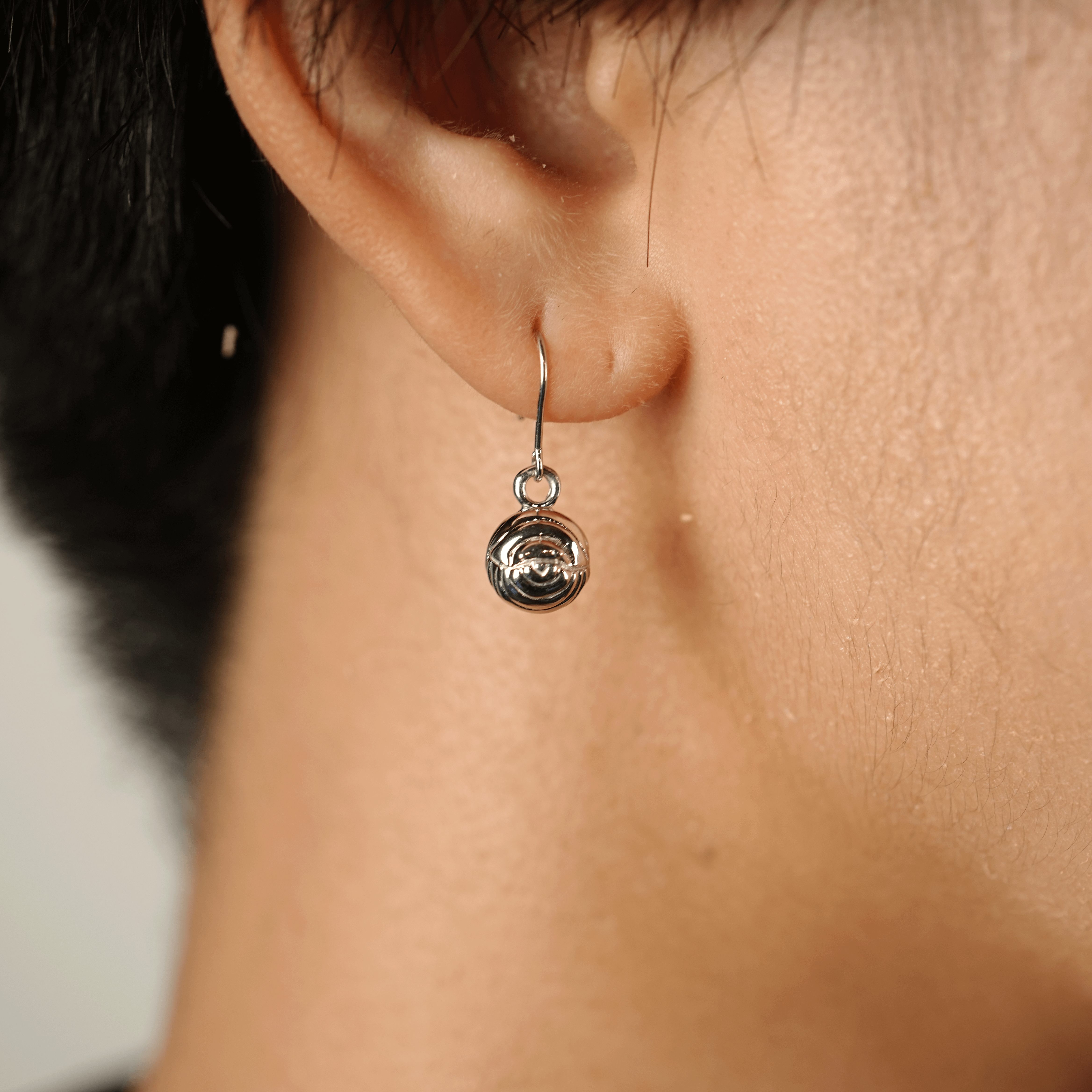 コロっとしたダンゴムシが耳元で揺れるキュートなデザインです。