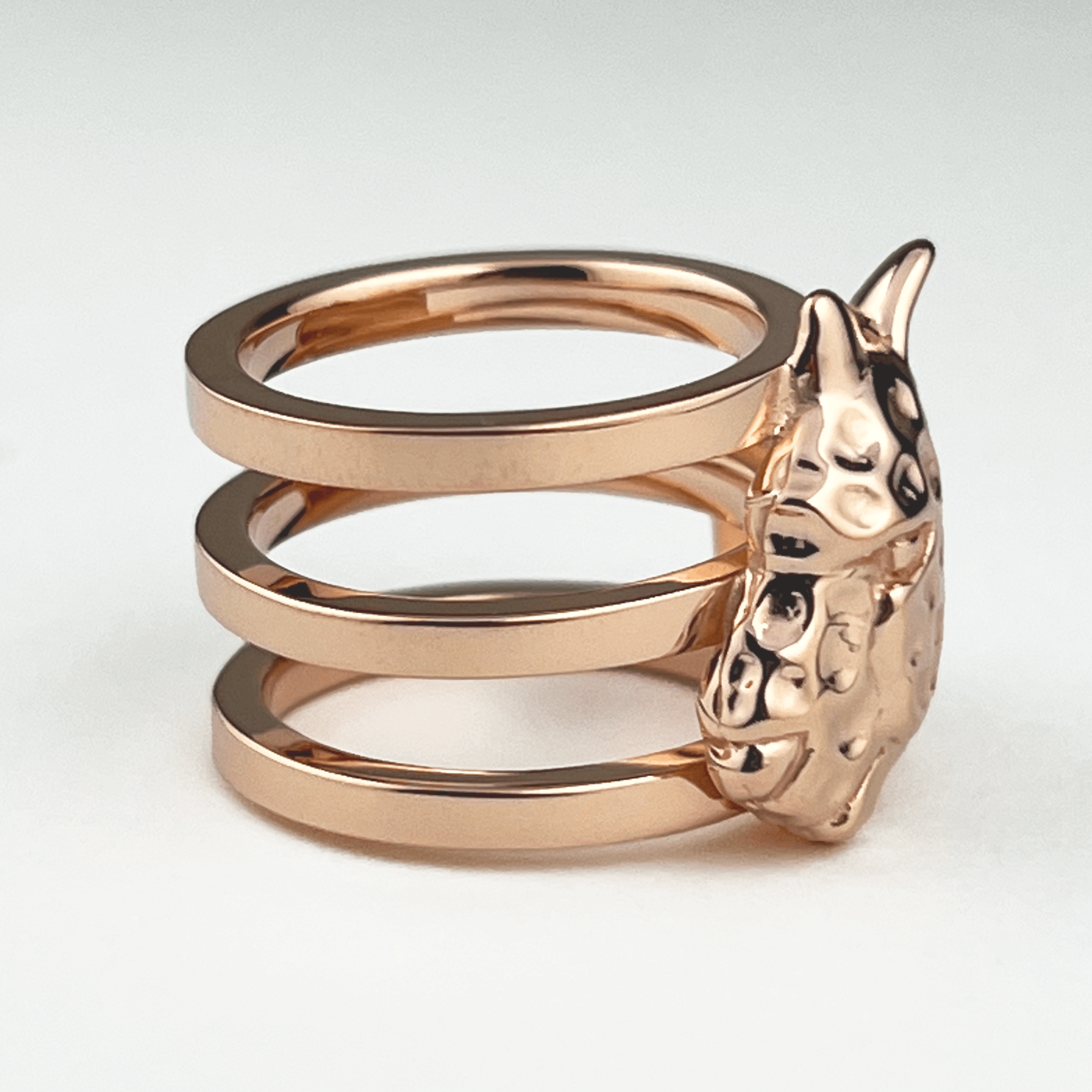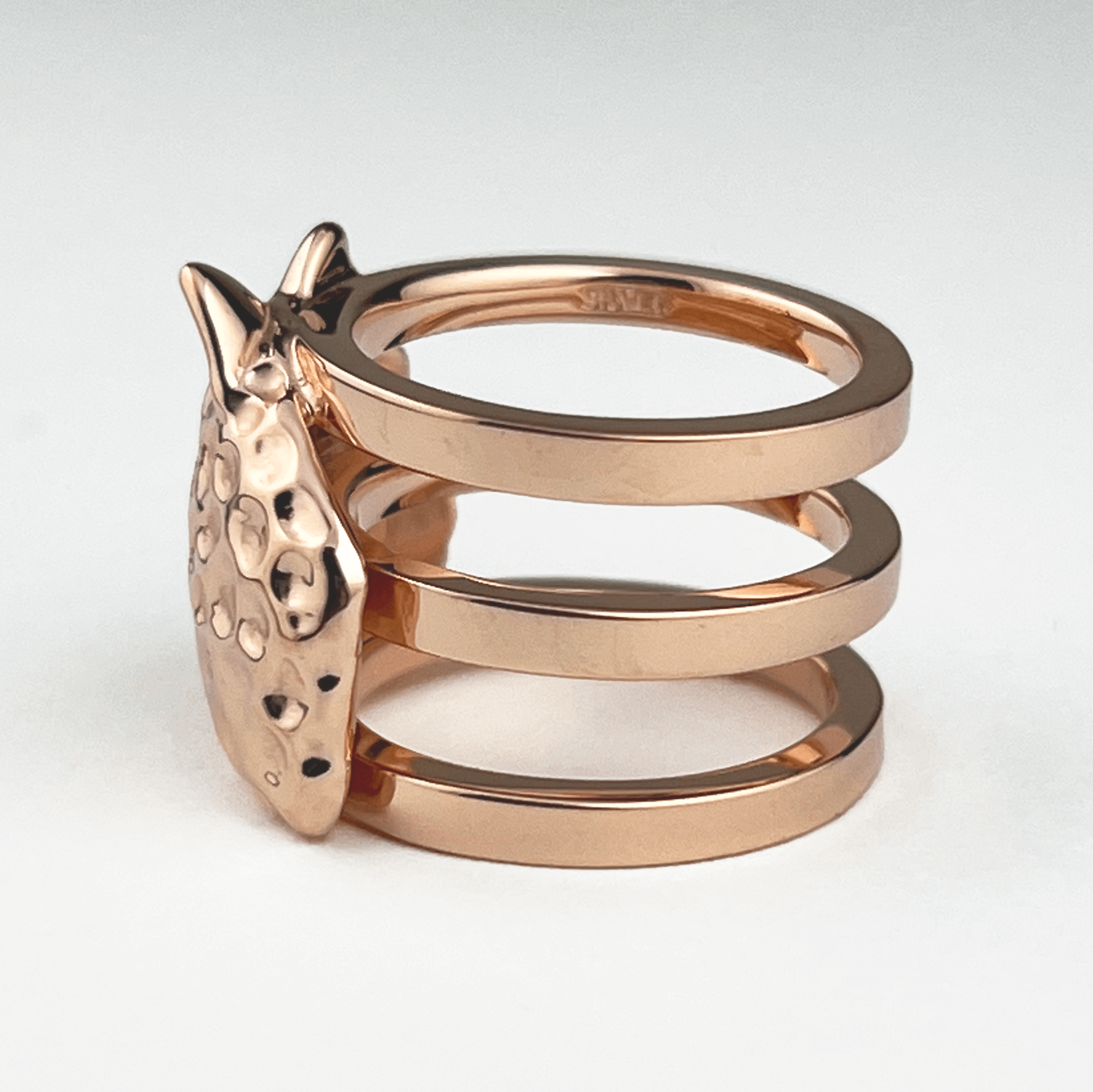 チーターの存在感のある前面と、シンプルな三連リングの背面はユニセックスデザインで性別を問わずご着用いただけます。