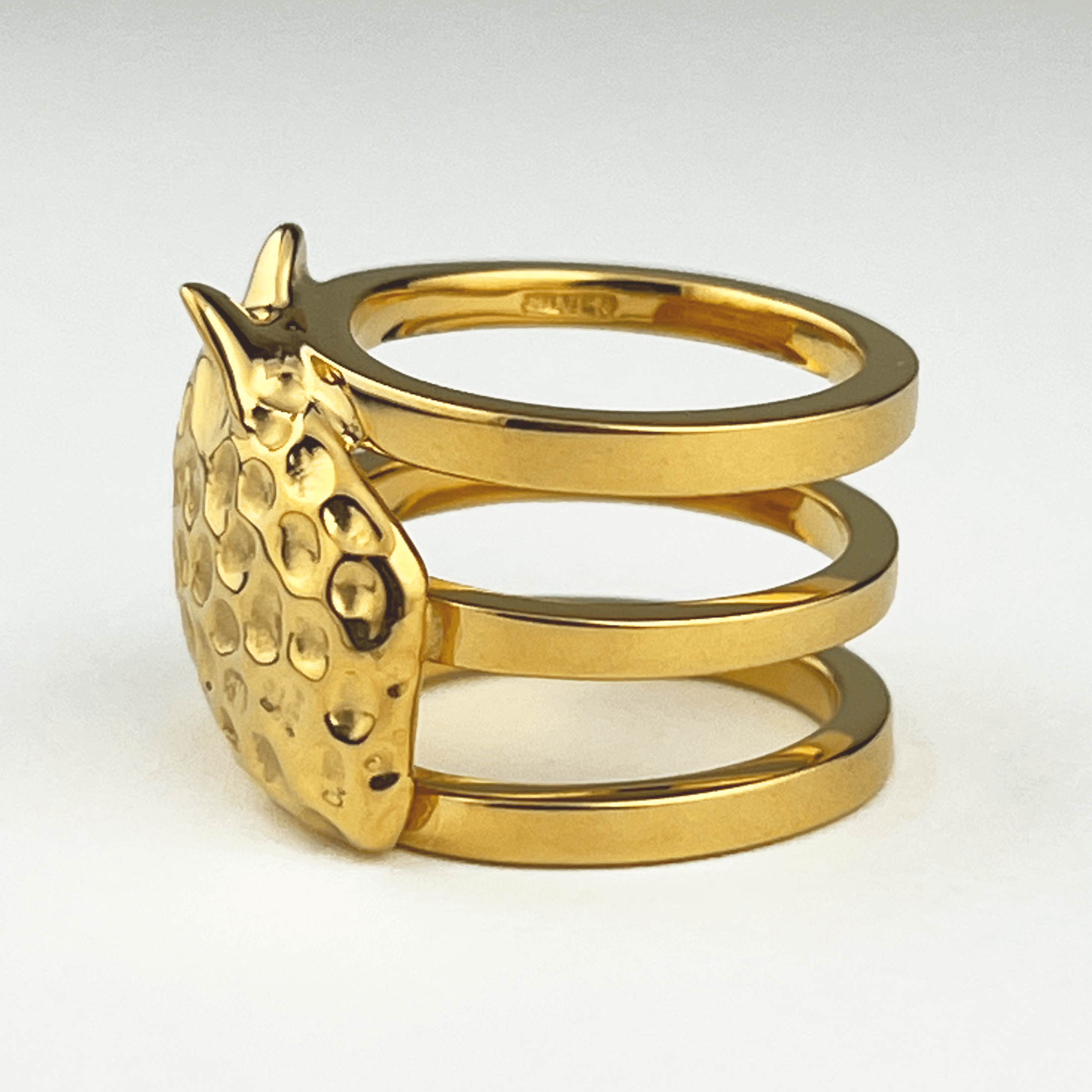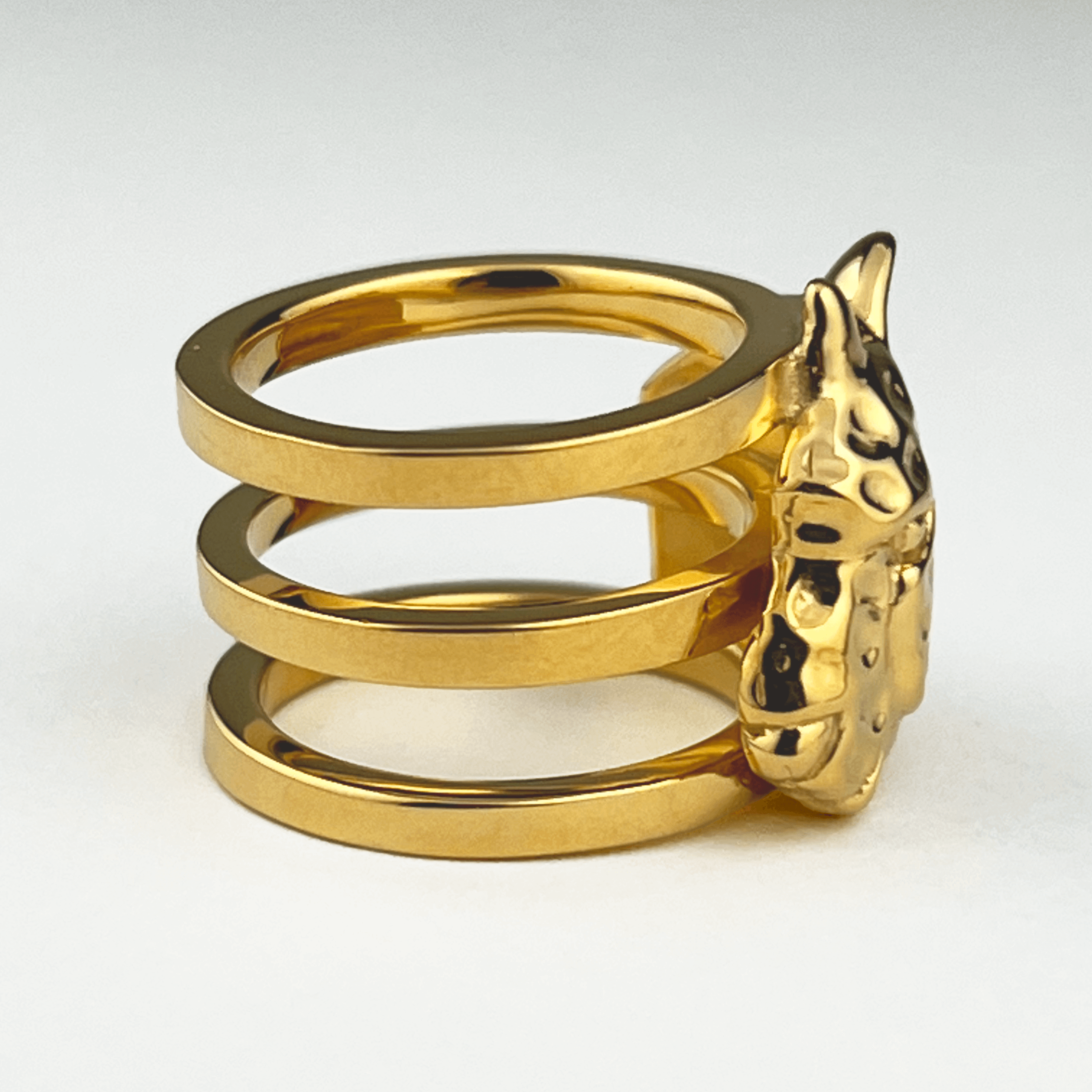 チーターの存在感のある前面と、シンプルな三連リングの背面はユニセックスデザインで性別を問わずご着用いただけます。