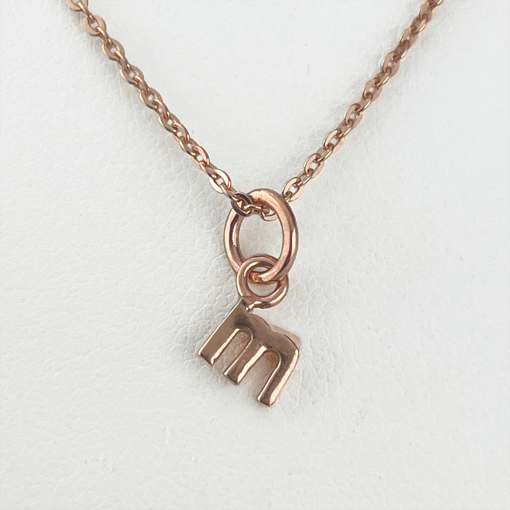 真修さんの「m」のイニシャルと合わせて胸元で揺れる可愛いデザイン。